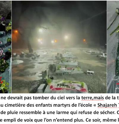 - Masoud Pezeshkian président de la République islamique d’Iran sur le réseau X : Je suis reconnaissant envers les volontaires et secouristes dévoués du Croissant‑Rouge qui se sont engagés de tout leur être sur le terrain du service, et qui, par leur rapidité d’action, leur courage, leur solidarité, leur abnégation et leur martyre, ont créé des moments admirables. Le champ de la défense de notre chère Iran ne sera jamais privé de la présence de femmes et d’hommes courageux.