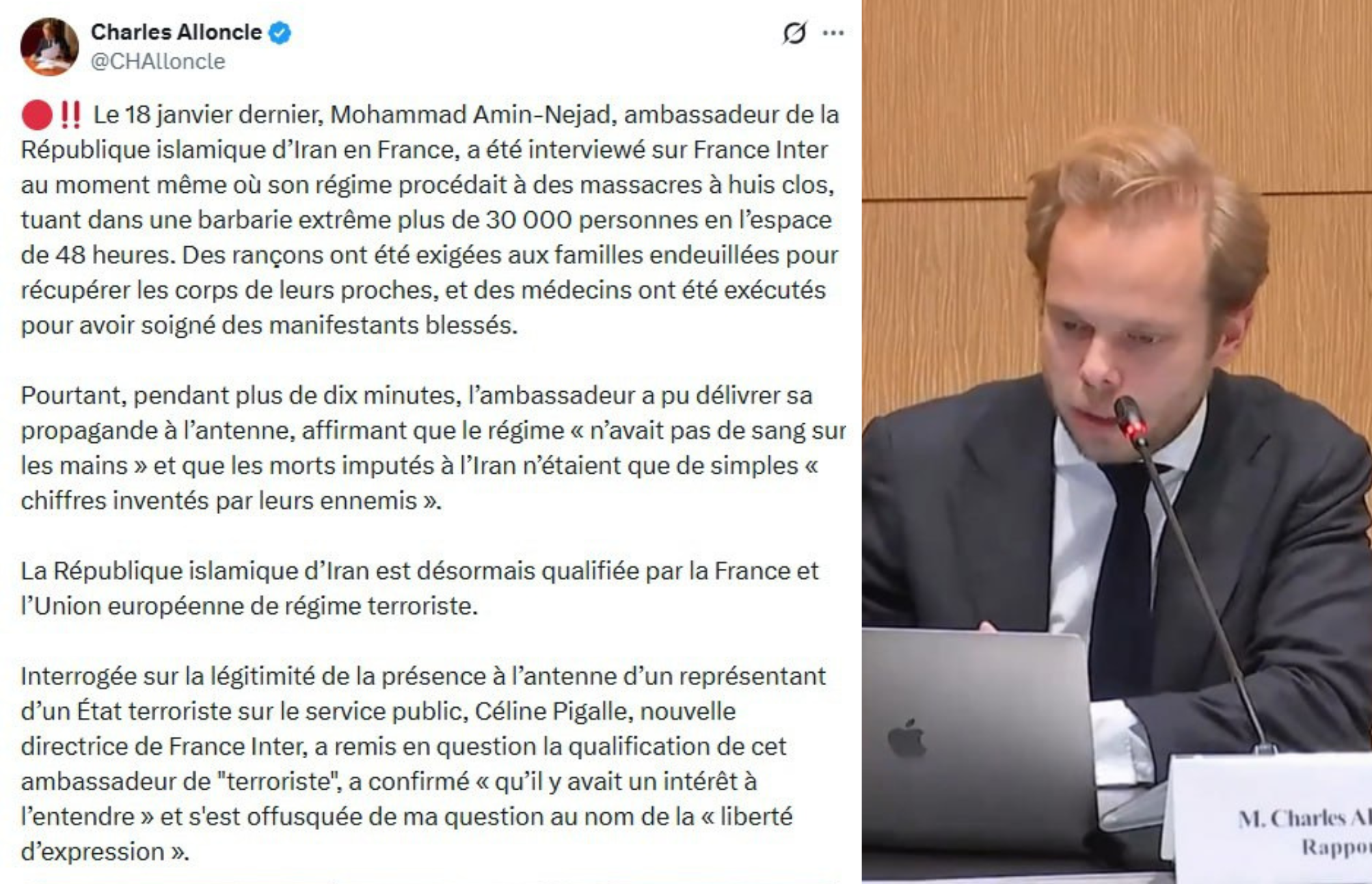 در پی انتشار اظهارات اخیر یکی از نمایندگان مجلس ملی فرانسه در شبکههای اجتماعی، که در آن حضور جناب آقای محمدامیننژاد، سفیر جمهوری اسلامی ایران در فرانسه، در رادیو فرانس انتر مورد انتقاد قرار گرفته و جمهوری اسلامی ایران بهعنوان «دولت تروریستی» معرفی شده و سفیر ایران نماینده چنین دولتی قلمداد شده، سرویس دیپلماسی عمومی سفارت جمهوری اسلامی ایران لازم میداند توضیحات زیر را ارائه کند:
